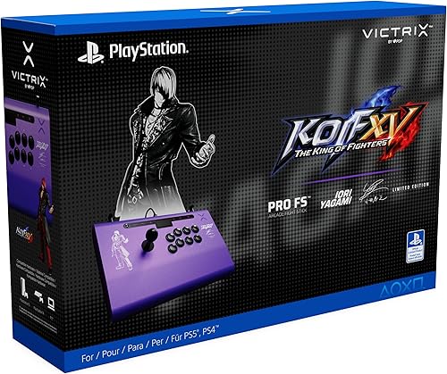 PDP Victrix Pro FS Playstation Fight Stick pour PS4, PS5, PC, Durable Aluminum, Sanwa Denshi Buttons, Ergonomic Wrist Slope, Detachable Joystick, Tournament Grade for Fighting Games KOF Iori