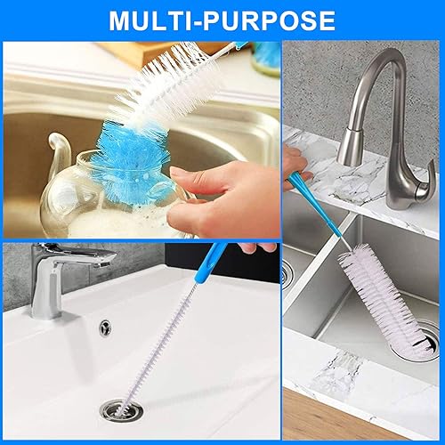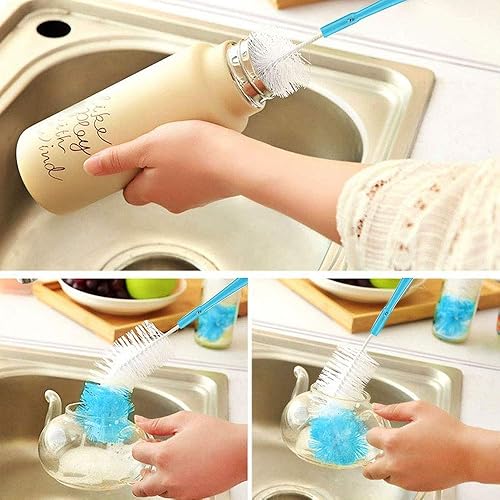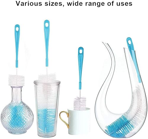 Lave Bouteille,Brosse Paille,Goupillon,Tube Brosse de Nettoyage,Brosse De Nettoyage À Bouteille Set,pour Biberon Vaisselles,Bouilloire,Clavier, Tuyau,etc(9pcs,Bleu)