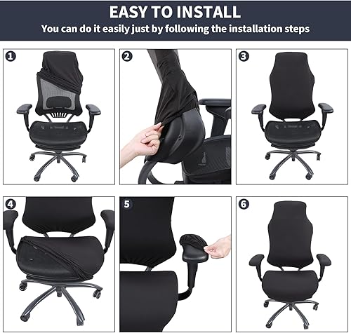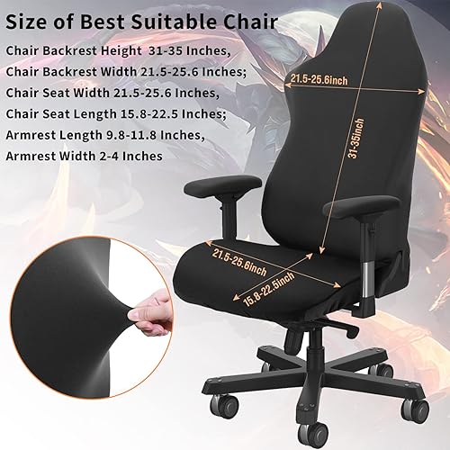 Housses de Chaise de Jeu Housse de Siège de Jeu Extensible Housse de Chaise d'Ordinateur Élastique Housse de Fauteuil Rotatif Housse de Chaise de Bureau avec Accoudoirs pour Maison (Noir)