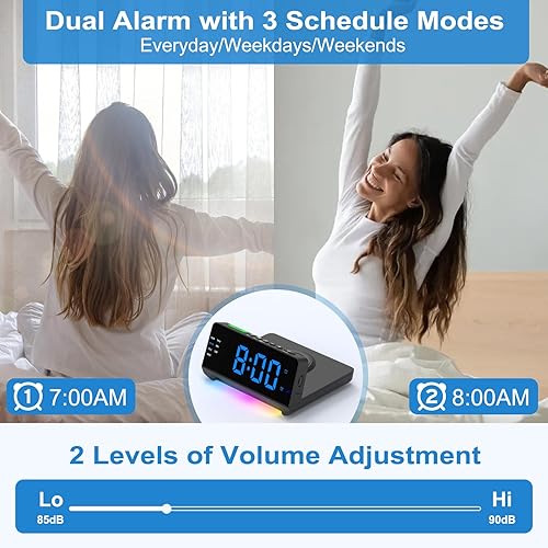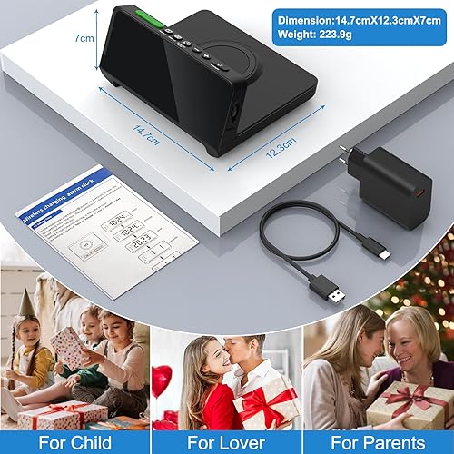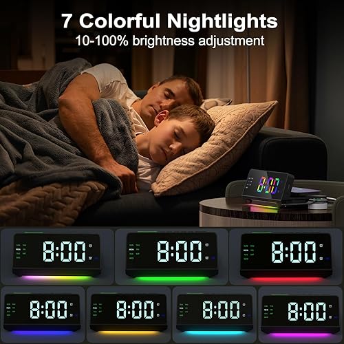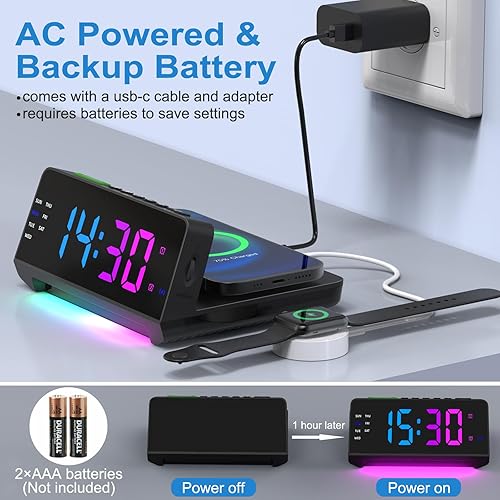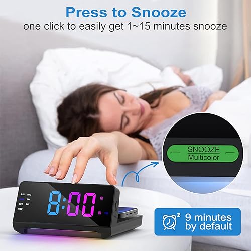 Réveil Numérique avec Chargeur Sans Fil, Réveil Lumineux avec Affichage Dynamique Coloré, Horloge Numérique avec 2 Alarmes, 1-15 min Snooze, Veilleuse LED Dimmable,2 Ports de Charge USB pour Ado Fille