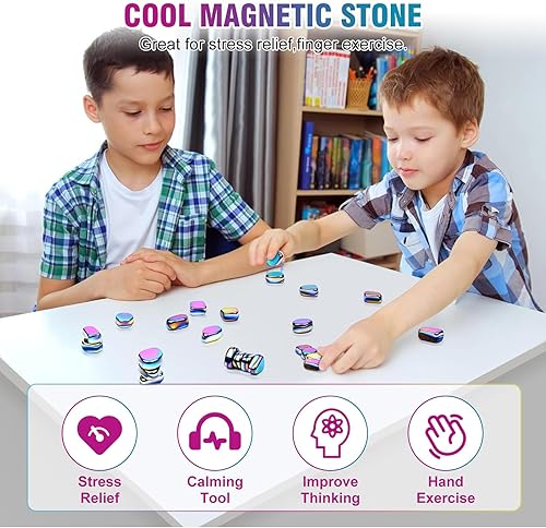 Kezidhp Jeu Magnétique Éducatif 30 Aimants en Hématite Naturelle Forts + Pièces Colorées Irrégulières & Sac - Cadeau Créatif Enfants Adultes - Science, Décoration, Bureau, Réunions, Sensoriel