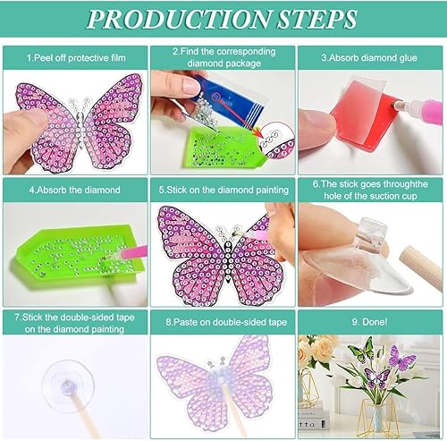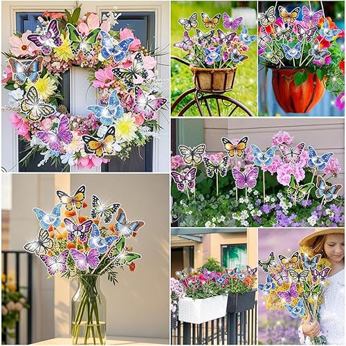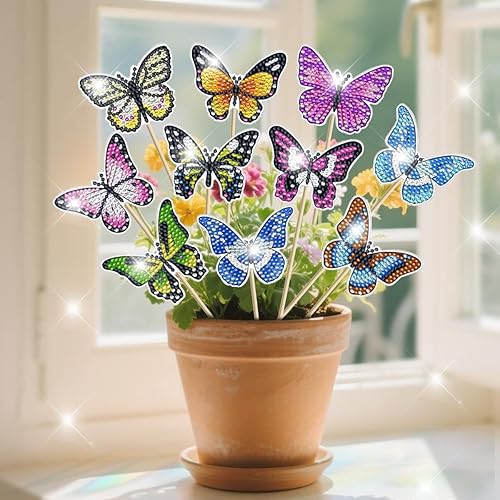 WELLXUNK Lot de 10 Kits de Peinture Diamant Papillon, Peinture de Diamant de DéCoration de Jardin pour Balcon Extérieur, D'Art Diamant Papillon DIY pour Enfants et Adultes