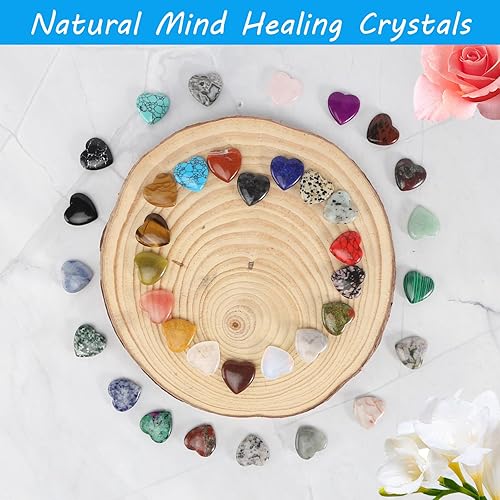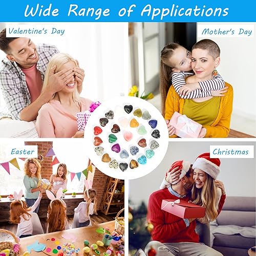 BELIHOME Lot de 30 pierres de cristal en forme de cœur - Pierres colorées en forme de cœur - Quartz rose - Améthyste - Pierres porte-bonheur pour enfants - Quartz améthyste en vrac