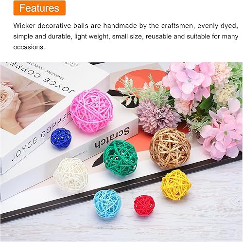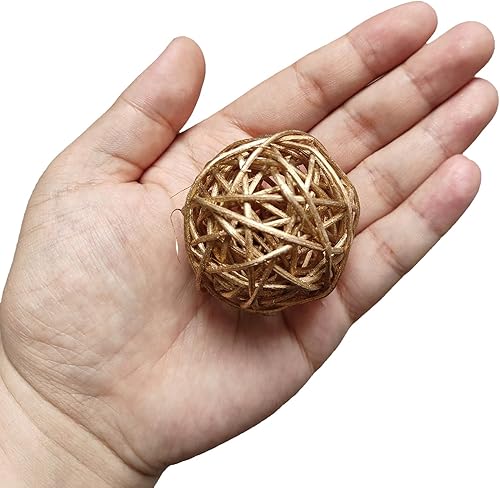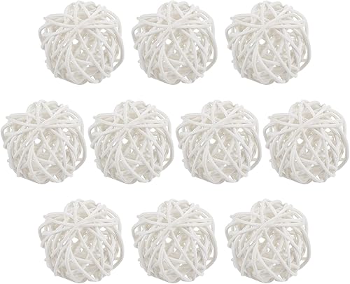 QUARKZMAN 10 pcs Boules en Rotin Tressé de 5 cm pour Décoration, Remplissage de Vase, Mariage, Centre de Table, Décoration d'Intérieur - Blanc