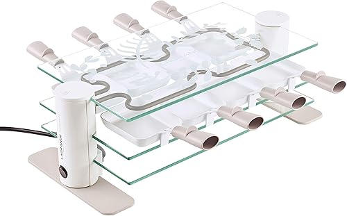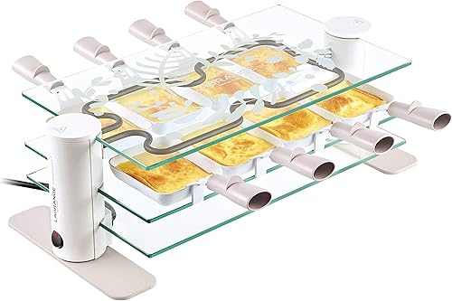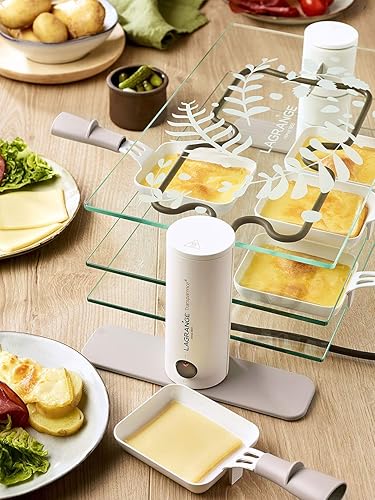 LAGRANGE Appareil à raclette 8 personnes, 1000 W, Plateaux verre, poêlons revêtements céramique, Repose poêlons intégré, Design épuré, Bouton marche/arrêt, 009819, Gris Perlé