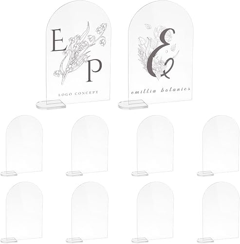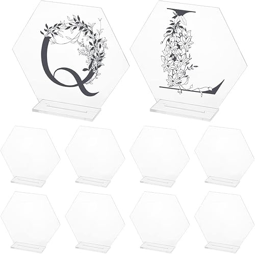 AHANDMAKER 10 Jeu de Marque-Places en Acrylique, Arche de Mariage Porte-Cartes Acrylique Nom Plaque Signe Marque-Places Tableau des Sièges Support Acrylique Cercle Numéro de Table Mariage, Clair