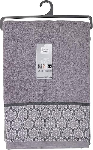 douceur d'intérieur Adelie Drap de Bain Eponge Unie Jacquard Adelie, Gris, 150x90 cm