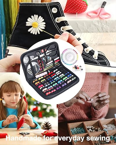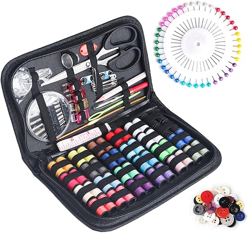 JANREAY Kit de couture avec 172 accessoires de couture, Kit de couture de voyage Accessoires de couture pour débutants, voyageurs Equipé de 48 bobines de fil, Aiguilles à coudre, Fil, Dé à coudre.