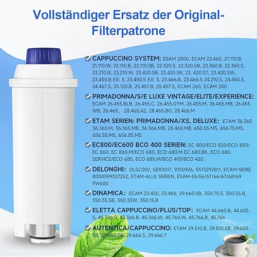 Molifal 6 pièces Filtre de remplacement pour De'Longhi DLSC002, SER3017, 5513292811 - Compatible avec Dinamica, Magnifica S, Eletta Explorer, ETAM, EPAM et ECAM