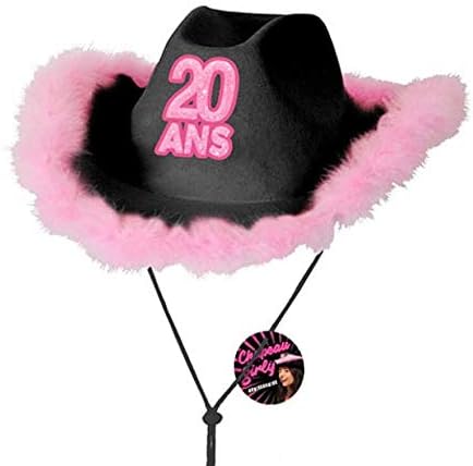 surprisez Cadeau avec chapeau anniversaire 20 ans noir et rose fuchsia (x1) REF/CHAG02N
