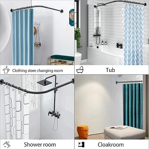 Tringle douche angle reglable, Barre de Rail de Rideau de Douche Incurvée Sans Perçage Extensible Salle de Bain Baignoire Baignoire Coin Tringle à Rideau En Forme de L Réglable En Acier Ino(Size:70 to