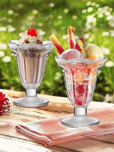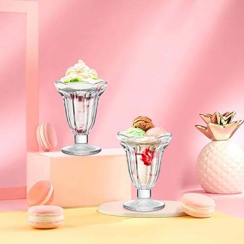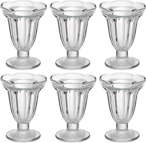 BEIJIALY Lot de 6 Tasses à Glace en Verre Transparent, Tasses à Dessert Classiques sur Pieds, Bol à Dessert, Verres à Coupe Glacée Transparents, Tasses à Yaourt Glacé pour Salades de(Clair)