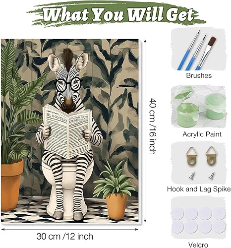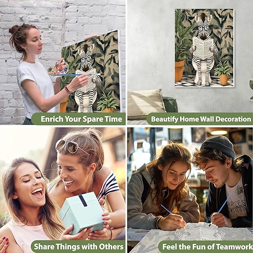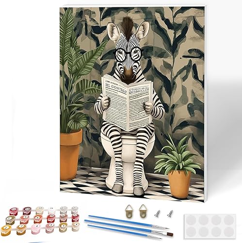 KEYIFA Zèbre Peinture par Numéros pour Adulte Avec Cadre, Kits de Peinture au Numéro avec Peinture Acrylique et Pinceaux, DIY Creatif Toile Peinture à l'huile, Décoration de Maison 30x40cm