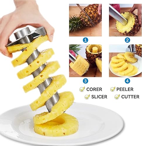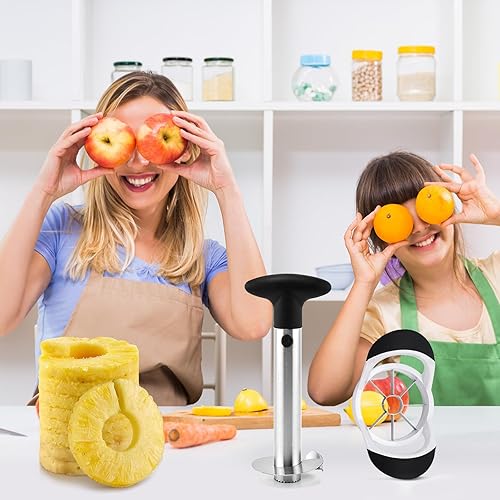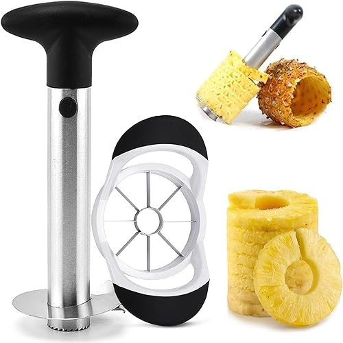 2 Pièces Ensemble Combiné De Coupe Pommes Ananas, Vide Pomme En Acier Inoxydable Epluche Ananas Inox Coupe Pommes Corer Pour La Maison Et La Cuisine, Lame Tranchante Épaissie