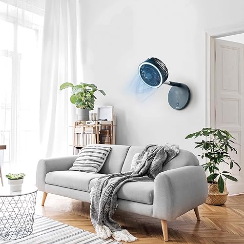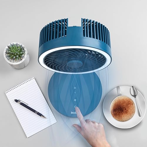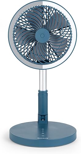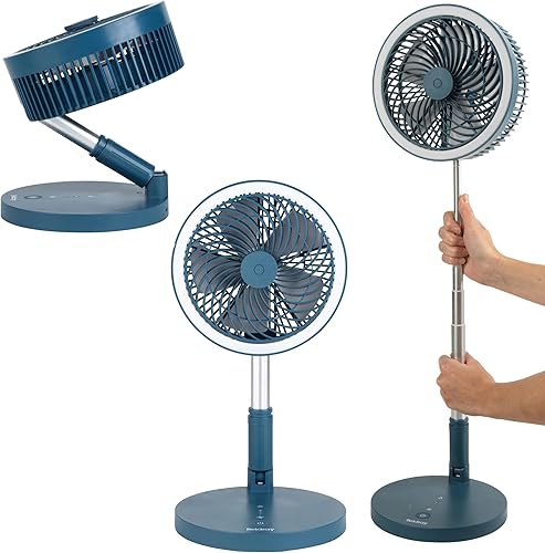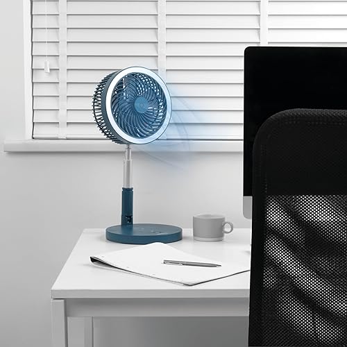 Beldray EH3413B Cooling Fan, Cordless Folding 3 In 1 Cooler, USB Rechargeable Desk/Pedestal/Wall Fan, For Home, Office, Bedroom, Adjustable Standing Room Fan, LED Ring Light, 3 Speed Settings, Blue