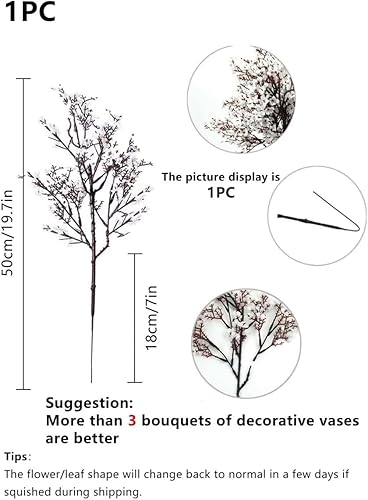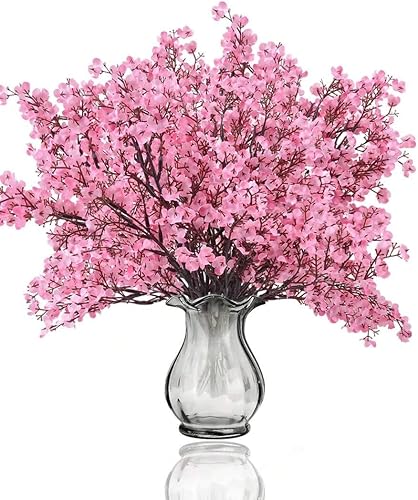 Lot de 10 fleurs artificielles de 50 cm en forme de cerisier, plantes artificielles décoratives, décoration de maison, mariage, fête (10, rose intense)