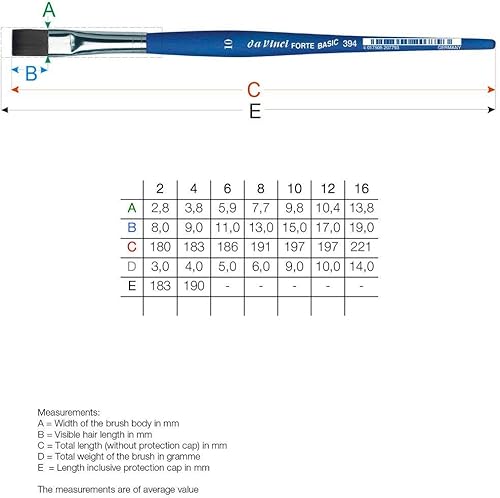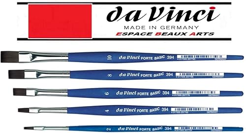 DaVinci ESPACE BEAUX ARTS da Vinci Série 394 Brosse Plate, Fibre synthétique, Bleu Mat, Set 5 pcs,NO. 2, 4, 6, 8,10