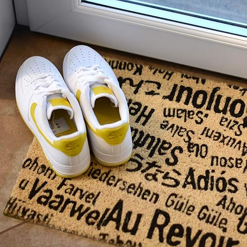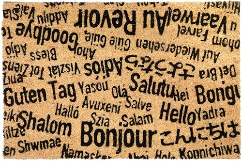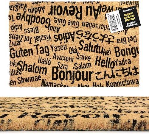 CKB LTD® - Paillasson unique avec inscription « BONJOUR, AU REVOIR » pour porte intérieure/extérieure avec un revers antidérapant en PVC – Fibre de coco naturelle