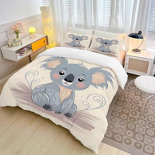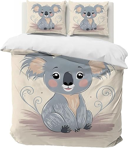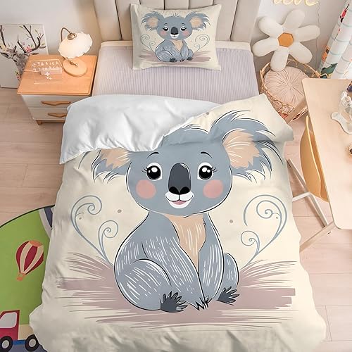 Housse de Couette 120x150 Koala Parure de Lit 1 Personne, Dessin Animé Housse Couette Microfibre Douce avec 1 Taie d'oreiller 40x60cm pour Enfant Fille Garcon A-56