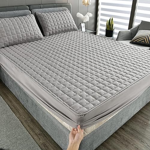 YUDEYU Drap-Housse Gris Coton lavé en Tissu Couvre-lit Protège-Matelas Hauts de Forme(70x180 cm/High 5-15cm)