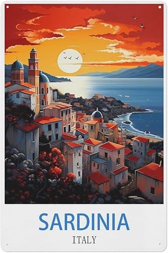Signe Métal Vintage,Sardaigne Italie,Rétro Peinture Plaque Signe En Fer Décor Mural Art Mural Suspendu Pour Salon Maison Café Décoration Noël Cadeau(20x30cm)8x12 inch-V90