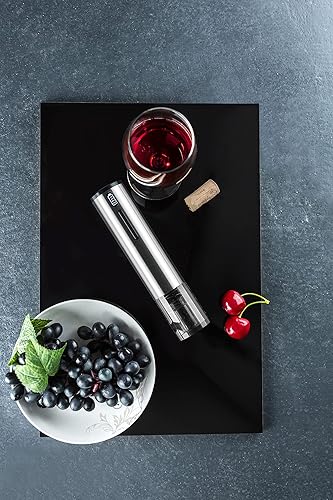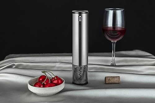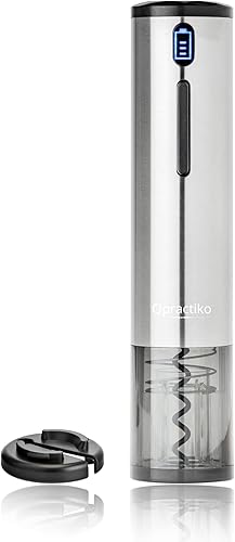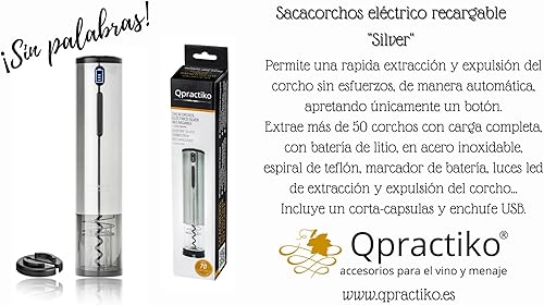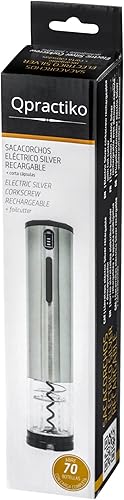 Qpractiko - Tire-bouchon Électrique Rechargeable | Ouvre jusqu'à 70 Bouteilles | Indicateur LED | Coupe-Capsule Inclus | Chargeur USB | Décapsuleur Vin | Acier Inoxydable, Argent, Polycarbonate