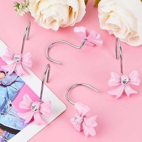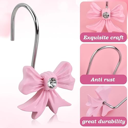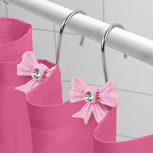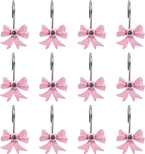 12 Unités de Crochets de Rideau de Douche Rose en Métal | Crochets Décoratifs avec Nœud Papillon | pour Salle de Bain, Chambre de Bébé et Déco Vintage