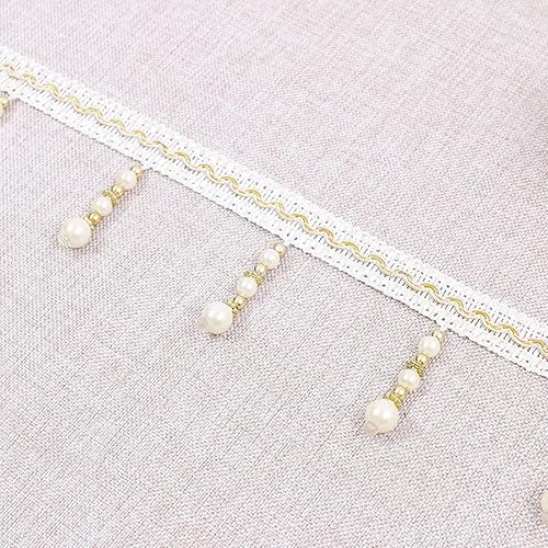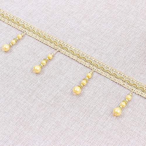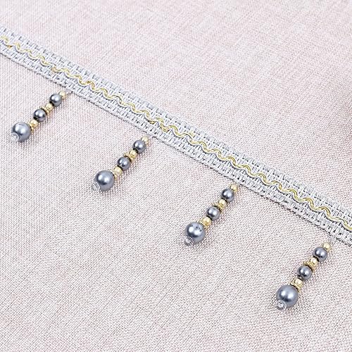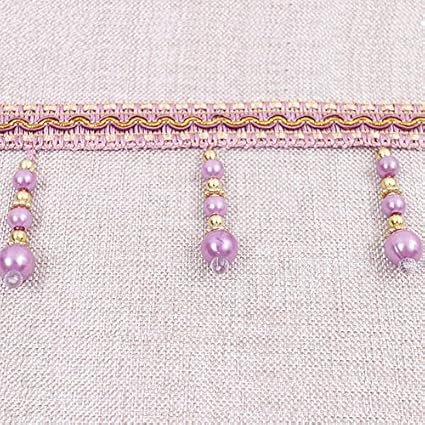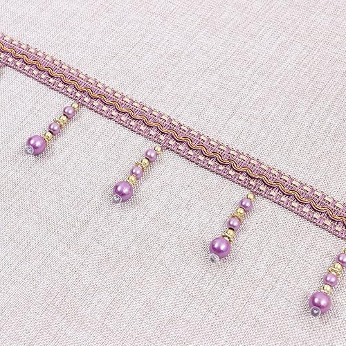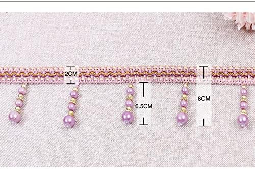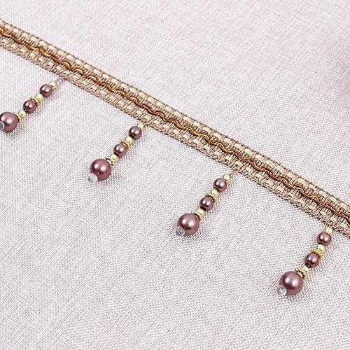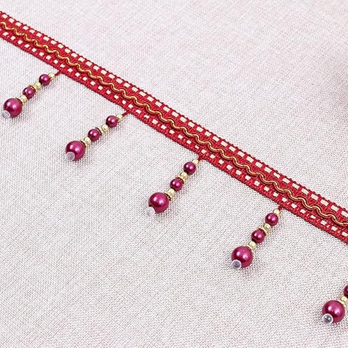 Yalulu 4 yards tressés avec perles et pompons à franges - Accessoire de couture - Bordure à pompons - Galon de rideau - Bordeaux