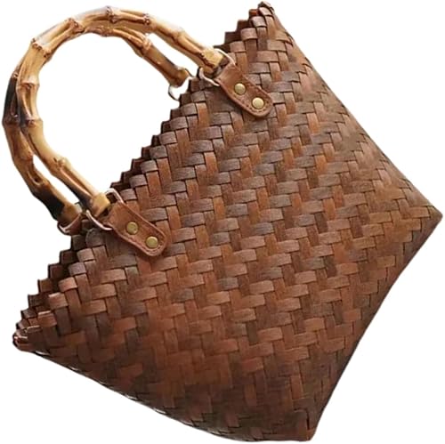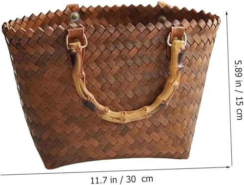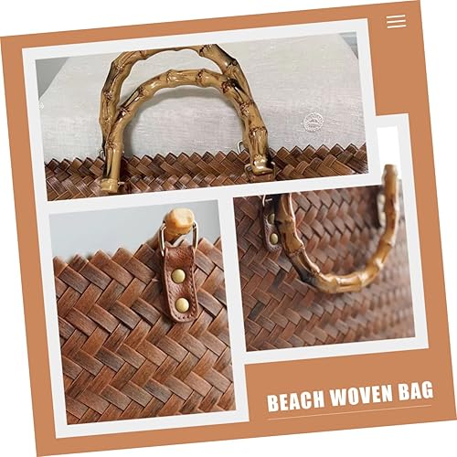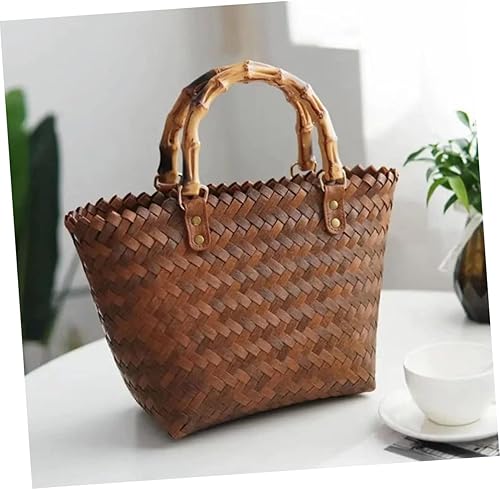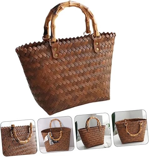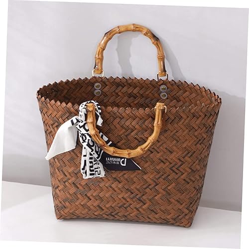 Yardwe Fourre-Tout Tissé Paniers En Rotin Pour Le Stockage Panier Portable De Paille Pour Femme Poignée En Bambou De Paille Poignée De En Rotin Sacs En Osier À