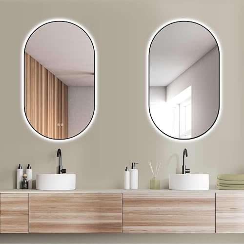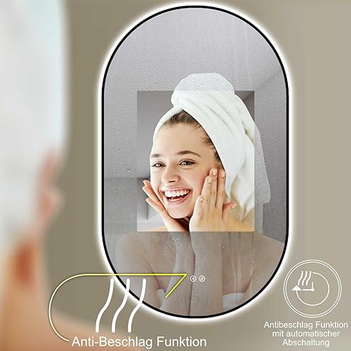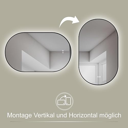 HOKO® Design LED Miroir Anti-buée Ovale 60x100/100x60cm+Cadre en métal Noir. Montage Vertical/Horizontal. XL Miroir de Salle de Bain+interrupteurs tactiles+LED réglable Chaude/Froid/Neutre 2700-6500k