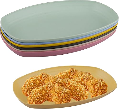 WakiHong Lot de 6 Assiettes Ovales Assiettes en Plastique Réutilisables Incassable Assiette de Camping,6 Couleurs,pour Salade,Pâtes,Fête,Maison,Micro-Ondes et Lave-Vaisselle