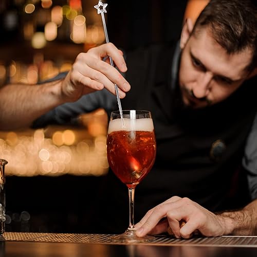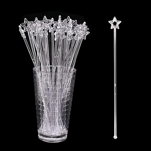 Agitateurs à Cocktail 100 Pièces Agitateurs à Boissons Acryliques Bâtons de Swizzle en plastique avec Long Manche Agitateurs à gin à dessus Pentacle pour la fête de mariage d'anniversaire de bar