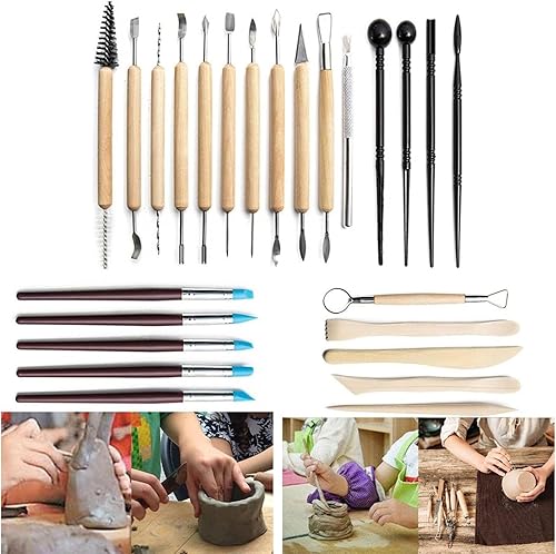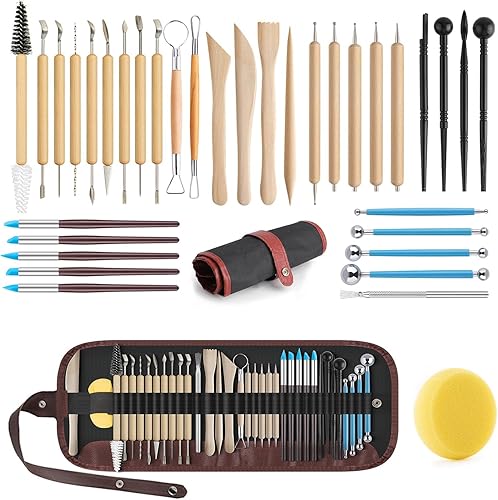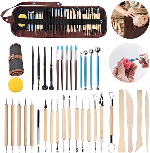 36pcs Kit Poterie,Outils Poterie Sculpture Argile Modélisation Modelage avec Sac de Rangement,Outils de Sculpture pour Poterie Argile,Céramique, Art de Gaufrage pour Débutants ou Professionnels