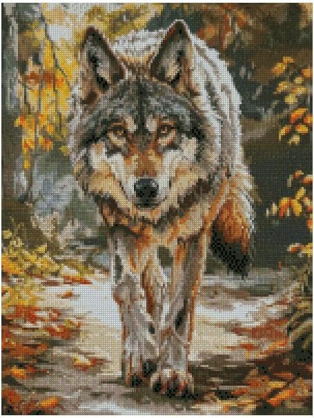 Kit de broderie au point de croix compté en coton Motif loup et loup 14 points 150 x 150 cm 26 x 26 cm