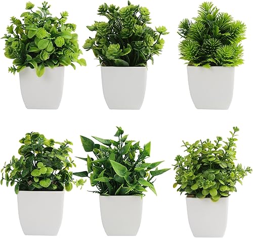 QINGYIWL 6 Pièces Mini Plantes Artificielles Interieur,Fausse Plante Interieur Decoration Maison pour la Décoration d'Intérieur, Balcon, Bureau, Salle de Bain
