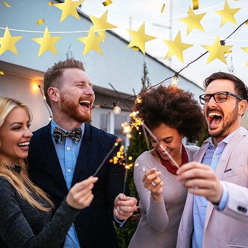 Etoile Découpée En Papier,De Papier étoile,Grandes Décorations D'étoiles,Dorées Etoiles Scintillantes,étoile Decoration,16cm Découpe De Carton,24 Pièces étoiles En Carton,Table Confetti Etoile(Or)