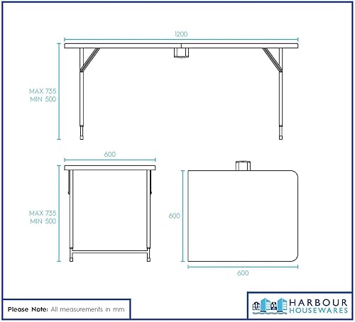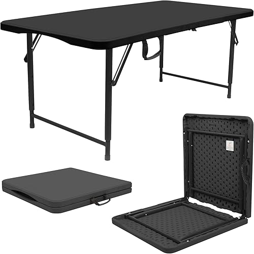 Harbour Housewares Table à Tréteaux Pliante Réglable en Hauteur - 120cm (4ft) - Noir - 1x Usage Intensif Pliable Portable Plastique Plein Air Jardin Camping Pique-Nique Meubles de Salle à Manger