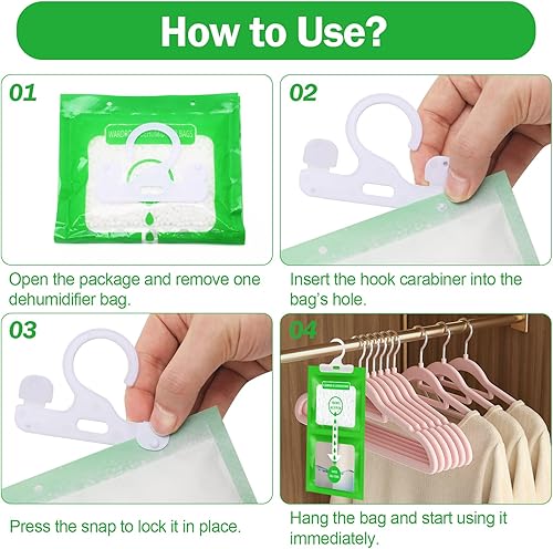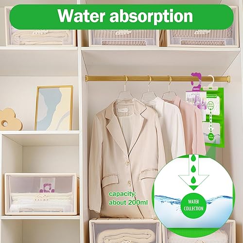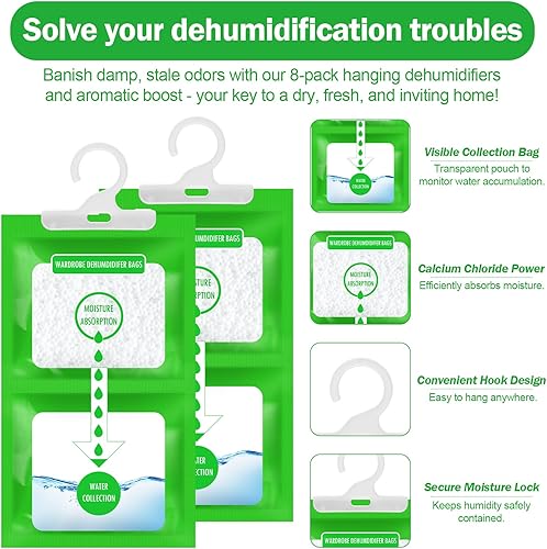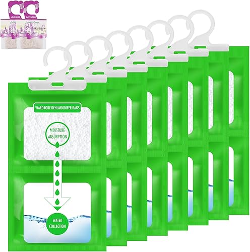 8 Pack Absorbeur d'Humidité Placard, Sac Déshumidificateur Suspendu 100g, Anti Humidité, Haute Absorption Sachet Anti Humidité pour La Cuisine, Salle de Bain, Armoire, Voiture