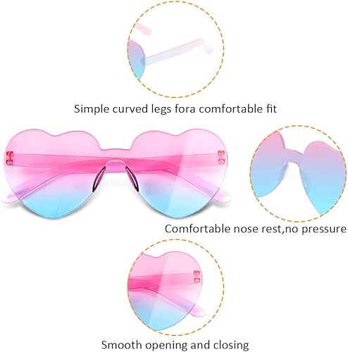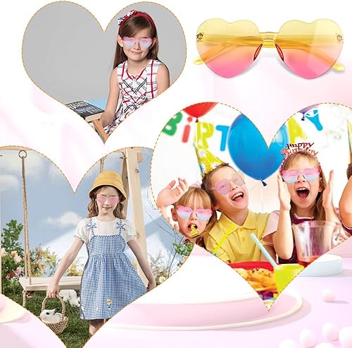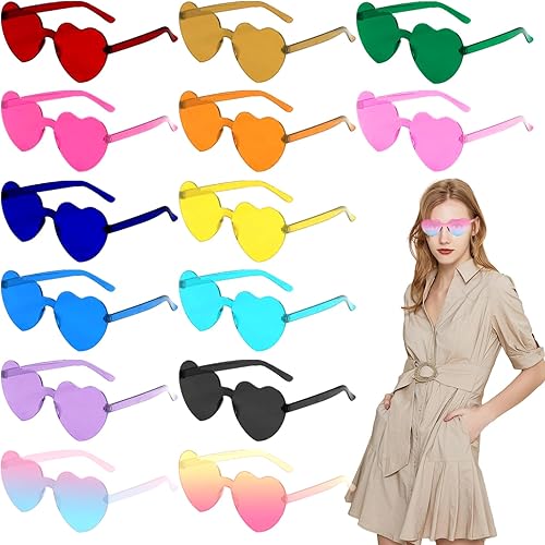 14 Paires Lunettes de soleil Transparentes en Forme de Cœur, Lunettes en Forme de Coeur Couleur Bonbon, Hippie Lunettes Fête En Coeur pour Femme, Heart Sunglasses pour Disco, Photobooth & Anniversaire