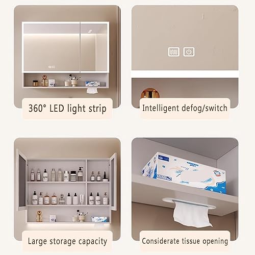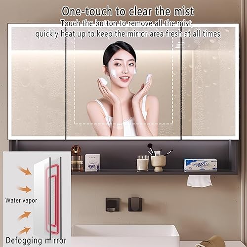 Armoire murale de salle de bain avec Interrupteur Tactile,Anti-buée Intelligent,armoire pharmacie avec LED miroir, éclairage,armoire murale salle de bain miroir,armoire pharmacie murale miroir ( Color