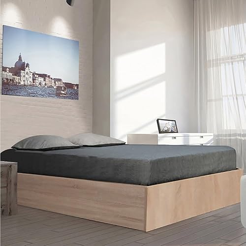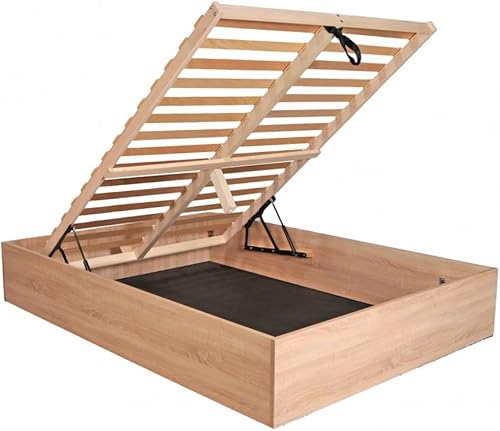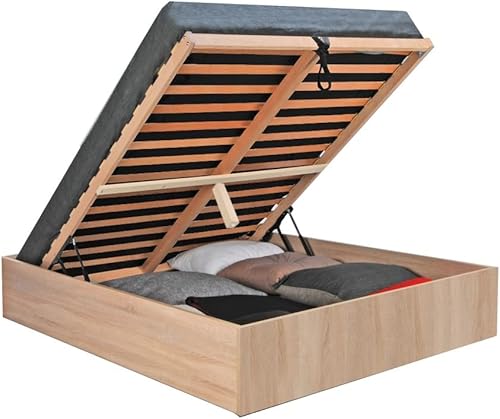 WEBER INDUSTRIES Lit Coffre Bilbao 180x200 cm + sommier/Décor chêne Blanchi
