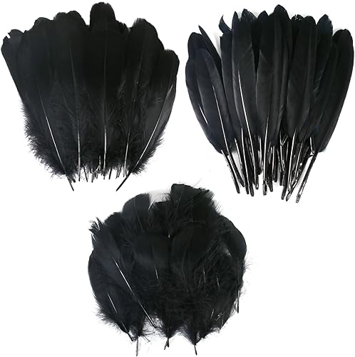 GGISUI 250 Pièces Plumes Noire Plumes d'oie de l'artisanat Naturel Plumes d'Artisanat Décorations 3 Tailles pour Loisirs créatifs Attrape-rêves Boucles d'oreilles Mariage Festival décoration