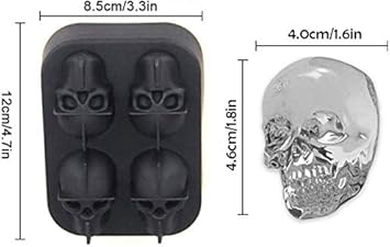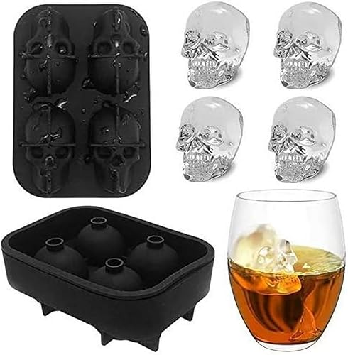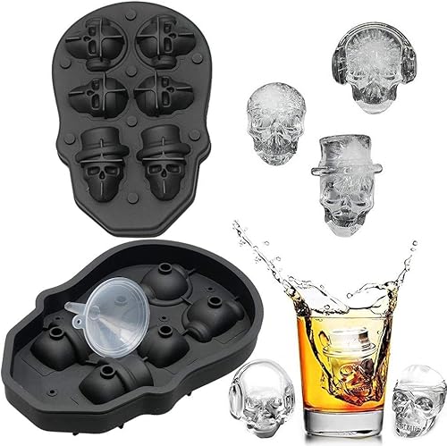 FLZONE 4 grilles Tête de Mort Moules à glaçons, 3D Tête de Mort Ice Cube avec Couvercle, drôle Tête de Mort de Glace pour Whiskey, Cocktails et Boissons jus avec Mini Entonnoir