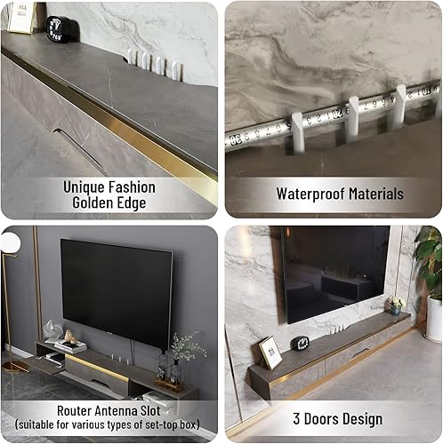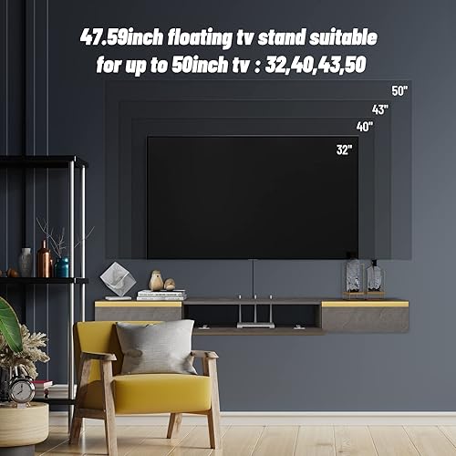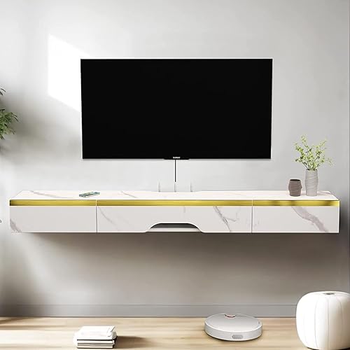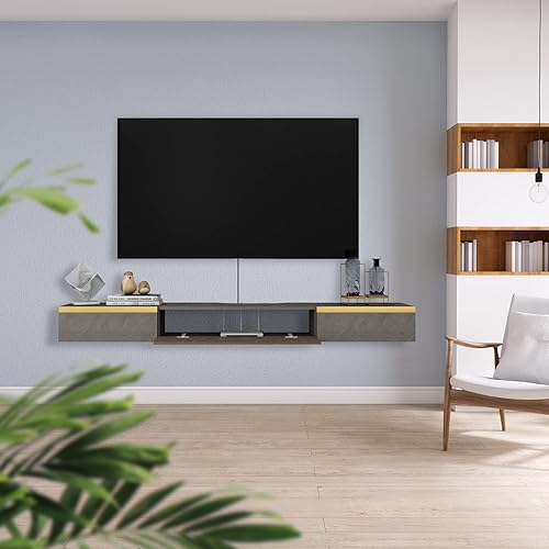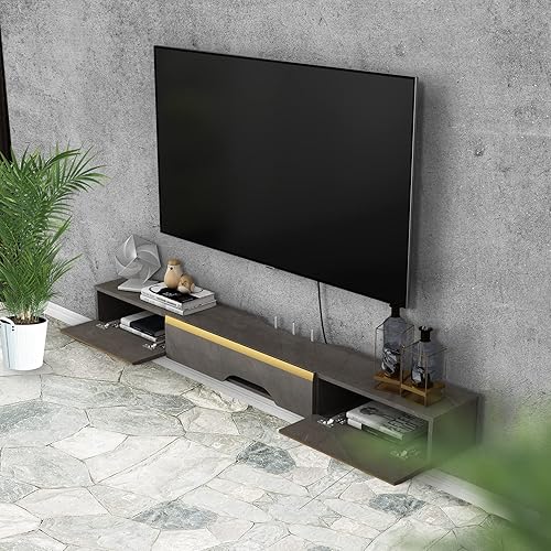 Pmnianhua Meuble TV suspendu - Meuble TV bas moderne - Étagère murale multimédia - Grand rangement avec 1 porte et 2 tiroirs - Pour salon, chambre à coucher et bureau (170 cm, gris foncé)