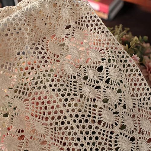ACMHNC Rideau Brise-bise Vintage en Dentelle Transparente, Style Maison de Campagne Rideau Court Voilage Broderie Crochet Décoration de Café Bistrot Cuisine Placard 1 Pièce,Beige,W x H 100x60cm