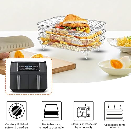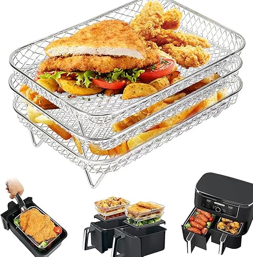 Accessoires pour friteuse à air comprimé Ninja à double piquet XL/Dual AF400EU/AF451EU 9,5 L, 3 couches avec clip, grille de gril en acier inoxydable 304