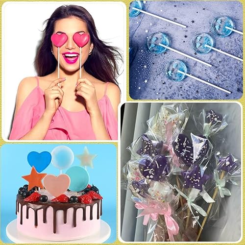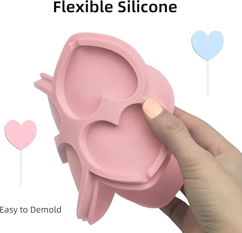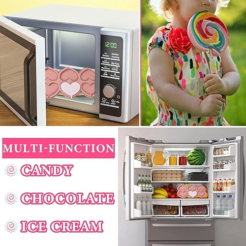 joonnair Lot de 2 Moule à sucette Forme de Cœur en Silicone avec 50 baton sucette Moules en silicone pour Sucette chocolat Moule à bonbon Sucettes en silicone Sucette cœur Moule sucette chocolat