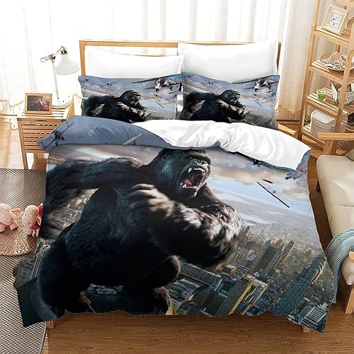 PXBDUASIE 3D, Imprimé King Kong Literie en Microfibre Super Douce Et Respirante Housse De Couette 3 Pièces Et Taie d'oreiller Double(200x200cm)