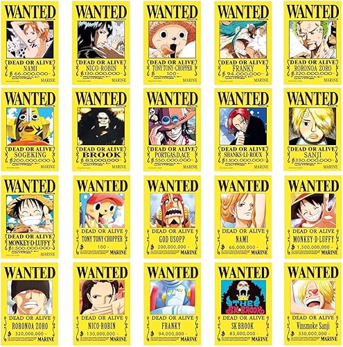 OnePiece Anime Poster,20 PCS OnePiece Luffy Wanted Posters Set Affiche Aesthetic Papier Peint Manga Autocollant Peintures Murales Deco Tableau Decoration Murale Salon Dortoir Chambre à Coucher