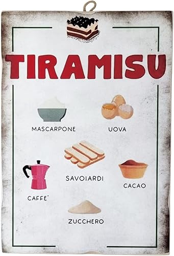 KUSTOM ART Tableau mural série Ingrédients Recettes Bonbons Cuisine italienne Tiramisu Impression sur bois 25 x 18 cm